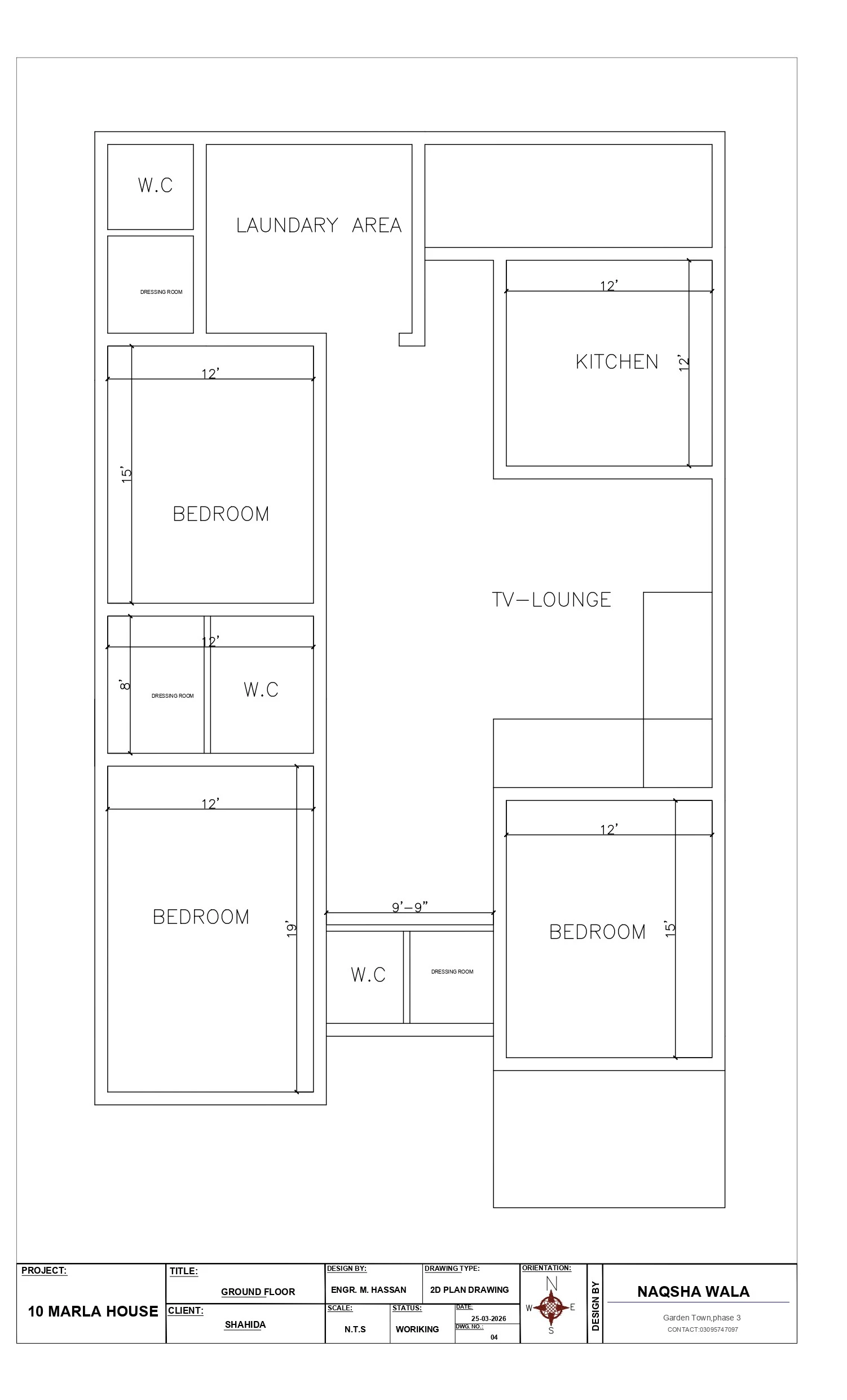 his project, located in Jalil Town, Gujranwala, was designed for our client Shahida, who required the development of a first floor over an already constructed ground floor. Unlike new house designs where everything starts from scratch, this project involved careful planning, structural evaluation, and intelligent design solutions to ensure that the additional floor could be constructed safely and efficiently. In many residential areas of Gujranwala, especially in established neighborhoods like Jalil Town, houses are often initially built as single-storey units without considering future vertical expansion. When the need arises to construct a second floor, it introduces multiple technical challenges — and this project was a perfect example of that scenario. 🧱 Project Challenge: Misaligned Structural Walls The most critical challenge in this project was that the existing ground floor walls did not align with the proposed first floor layout. This is a common issue in renovation and extension projects, but if not handled properly, it can lead to serious structural problems. Misaligned walls mean that: Load cannot transfer directly downward Structural stress becomes uneven Risk of cracks and long-term instability increases Instead of forcing the design to match the existing structure (which often compromises functionality), a more professional approach was adopted — balancing design requirements with structural safety. 🏗️ Structural Assessment & Solution Before starting the design process, a detailed structural assessment of the building was carried out. The purpose was to understand how much load the existing structure could bear and how the new floor could be integrated safely. Based on this evaluation, the following solutions were implemented: ✔️ Load Redistribution Planning Special attention was given to how the load of the first floor would transfer to the ground floor. Since walls were not aligned, direct load paths were not available everywhere. ✔️ Beam Integration Reinforced concrete beams were introduced at strategic locations to carry loads from upper walls and distribute them safely to structural supports below. ✔️ Structural Balancing The design was adjusted in such a way that heavy loads were minimized in unsupported areas, ensuring better balance and stability. ✔️ Lightweight Construction Strategy Where possible, lighter construction materials and techniques were considered to reduce the overall load on the structure. These measures ensured that the house remains safe, stable, and durable for long-term use, even after vertical expansion. 📐 First Floor Layout Planning According to the layout provided in the project drawing , the first floor was designed to provide a complete and comfortable living experience for a modern family. 🛏️ Bedrooms The design includes multiple spacious bedrooms, each planned with proper dimensions (around 12’ x 15’) to ensure comfort, ventilation, and usability. The placement of bedrooms also ensures privacy from common areas. 👗 Dressing Rooms Attached dressing areas have been incorporated with selected bedrooms, enhancing functionality and adding a touch of modern living standards. 🚿 Bathrooms (W.C) Bathrooms are positioned strategically to align with plumbing feasibility from the ground floor, reducing construction complexity and cost. 🍽️ Kitchen A well-proportioned kitchen (approximately 12’ x 12’) has been designed with practical workflow in mind. Proper ventilation and accessibility make it suitable for everyday use. 🛋️ TV Lounge The TV lounge acts as the central family space, connecting all rooms. It is designed to be open, comfortable, and ideal for gatherings. 🧺 Laundry Area A dedicated laundry space has been included, which is often overlooked but plays an important role in maintaining organized living. 🌿 Design Philosophy The design approach for this project was based on three key principles: 1. Structural Safety First No design decision was made without considering its impact on the building’s stability. 2. Functional Planning Each space was designed to serve a clear purpose, ensuring maximum usability without wasted areas. 3. Modern Living Standards The layout reflects the needs of a modern family, including privacy, comfort, and efficient circulation. ⚠️ Why Professional Planning is Important House extensions are often underestimated. Many homeowners attempt to construct additional floors without proper design or structural consultation, which can lead to: Cracks appearing in walls after construction Uneven load distribution Reduced lifespan of the building Safety risks for residents This project highlights how proper planning can prevent all these issues and deliver a result that is both safe and aesthetically pleasing. 📍 Jalil Town – A Growing Residential Hub Jalil Town, Gujranwala, is an area where many families are upgrading their homes instead of relocating. With increasing land costs, vertical expansion has become a practical solution. Projects like this demonstrate how existing houses can be transformed into multi-storey, functional homes with the right expertise. 🏡 Project Outcome The final design successfully achieved: ✔️ Safe first floor construction ✔️ Proper load management ✔️ Modern and functional layout ✔️ Efficient use of available space ✔️ Long-term structural reliability This project stands as a strong example of how thoughtful architectural planning can overcome structural limitations and deliver high-quality results. 📞 Get Your House Designed If you are planning to construct a first floor, second floor, or modify your existing house in Gujranwala, professional guidance is essential. 📱 03095747097 🌐 nakshagujranwala.com
