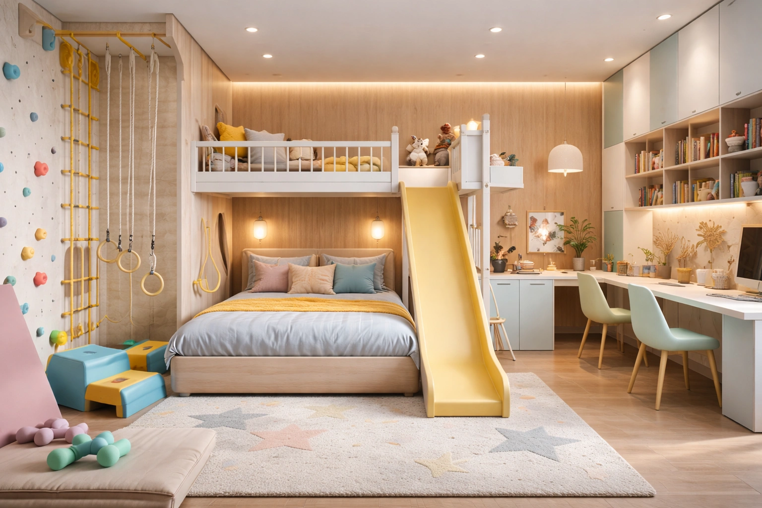 Kids Bedroom Interior Design with Play Area & Study Space in Aroop Gujranwala