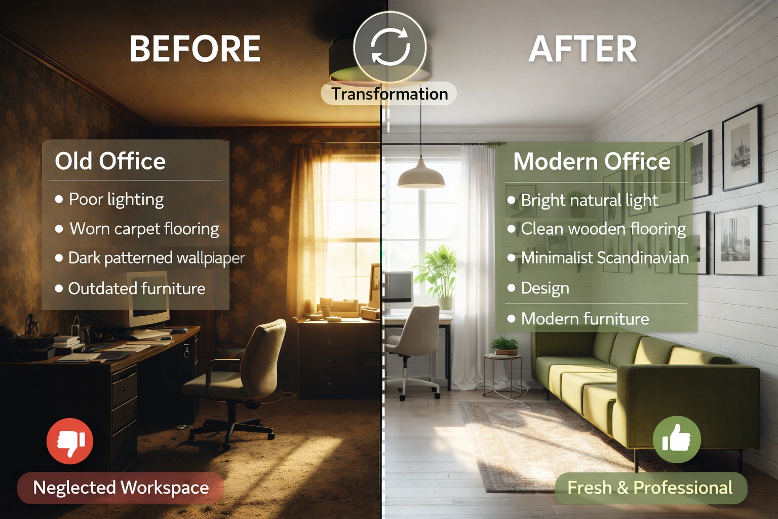 Project Description (Approx. 1200 Words) Designing a functional and aesthetically pleasing office within a limited space requires careful planning, creativity, and efficient use of every square foot. This project focuses on the complete transformation of a 15 ft by 60 ft office space, converting a simple rectangular hall into a modern, productive, and visually appealing workplace. The goal of the design was to create a professional environment that supports workflow efficiency while maintaining a contemporary corporate identity. The total area of the office is approximately 900 square feet, which offers a narrow but long layout. Such proportions present both challenges and opportunities. Without proper planning, the space could easily feel congested or like a corridor. However, with thoughtful zoning, lighting, and material selection, it can become a dynamic and functional workspace. Initial Condition – Before Design Before the renovation, the office existed as a simple rectangular hall measuring 15 feet in width and 60 feet in length. The interior had basic finishing, including plain painted walls, standard ceramic floor tiles, and fluorescent tube lighting. There were no partitions, no dedicated work areas, and no visual hierarchy within the space. Because the room was long and narrow, it lacked proper spatial organization. Employees would have had difficulty maintaining privacy or concentration due to the open hall configuration. Additionally, the absence of proper lighting design and interior elements resulted in a dull and uninspiring environment. The entrance opened directly into the workspace without any reception or waiting area, which reduced the professional image of the office. Storage areas, meeting space, and executive workspace were also missing. Overall, the office lacked both identity and functionality. These issues formed the basis of the redesign strategy. Design Objectives The design process focused on several key objectives: Efficient space planning to accommodate multiple working zones. Creating a welcoming reception area for visitors and clients. Providing private cabins for management while keeping collaborative areas open. Maximizing natural and artificial lighting to enhance the sense of space. Using modern materials and finishes to reflect a professional corporate image. Ensuring smooth circulation through the long office layout. Because the office dimensions were fixed, the design had to utilize the length of the space intelligently while avoiding visual monotony. Space Planning Strategy The office was divided into several functional zones arranged sequentially along the length of the space. This linear zoning works well for narrow layouts because it maintains clear circulation while separating different activities. 1. Reception and Waiting Area The entrance section of the office was designed as a reception area to create a professional first impression. A sleek reception desk was placed near the entrance along with comfortable seating for visitors. Behind the reception desk, a feature wall with textured panels and branding elements adds visual interest and establishes the identity of the office. Soft lighting and decorative elements such as indoor plants help create a welcoming atmosphere. This area acts as a buffer between the outside environment and the main workspace. 2. Open Workstation Area Following the reception, the central part of the office was designed as an open workstation zone for employees. Because the office is only 15 feet wide, the workstations were arranged along one side with a circulation pathway on the other. This layout prevents overcrowding and ensures smooth movement throughout the office. Modular desks with integrated storage allow employees to work efficiently while keeping the environment organized. The open layout also encourages collaboration and communication among team members. 3. Glass Partition Cabins To provide privacy for management while maintaining visual openness, glass partitions were introduced to create separate cabins. Transparent glass helps maintain the sense of space in the narrow office. It allows natural light to flow throughout the interior while visually connecting different zones. These cabins are ideal for supervisors, managers, or senior staff who require a quieter workspace while remaining accessible to the team. 4. Meeting Room Toward the middle or rear portion of the office, a compact meeting room was incorporated. Meetings, client discussions, and presentations can be conducted here without disturbing the main workspace. A glass meeting room ensures that the office remains visually open while still providing acoustic separation. Inside the meeting room, a conference table, comfortable chairs, and presentation screen create a functional collaboration environment. 5. Executive Office At the far end of the layout, a private executive office was designed. This area provides maximum privacy and prestige for the company owner or senior executive. The design includes a large desk, lounge seating for informal discussions, and custom cabinetry for storage. Premium finishes and accent lighting give this section a more refined and sophisticated appearance compared to the rest of the office. Positioning the executive office at the end also ensures minimal disturbance. Interior Design Concept The interior design follows a modern minimalist corporate style. The idea was to create a clean and elegant environment without unnecessary clutter. Color Palette The chosen color palette consists of neutral tones such as: • Warm whites • Soft greys • Natural wood textures • Matte black accents These colors create a calm and professional atmosphere while making the space appear larger and brighter. Lighting Design Lighting plays a critical role in transforming the office environment. Instead of relying solely on basic tube lights, a layered lighting system was implemented. This includes: • Recessed ceiling lights for