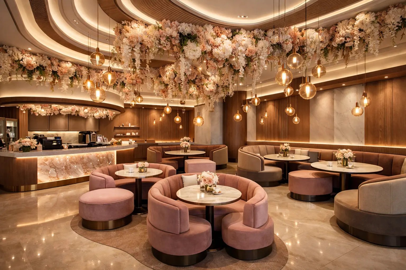Designing a café today is not just about creating a place to eat or drink—it is about crafting an experience. In a competitive city like Gujranwala, especially in well-developed areas such as Satellite Town, cafés must stand out not only through their menu but also through their ambiance. Customers are now drawn toward places that are visually appealing, comfortable, and “Instagrammable.” This modern café interior design project, completed for client Usman by NakshaGujranwala.com, perfectly reflects these evolving trends in commercial interior design. This project focuses on a luxurious yet balanced design concept that combines soft reddish-pink tones with neutral shades such as warm beige, off-white, walnut wood, and champagne gold accents. The key objective was to create a welcoming environment that feels elegant and modern without becoming overwhelming. Instead of overusing pink, the color is applied strategically, allowing the space to maintain a refined and premium look. 📍 Project Location – Satellite Town, Gujranwala Satellite Town is one of the most active and well-established commercial areas in Gujranwala. With a growing number of cafés, restaurants, and food businesses, competition is high. For a café to succeed in this location, it must offer something unique—both in terms of design and customer experience. This café was designed keeping the local audience in mind. Families, young professionals, and students frequently visit cafés in this area, so the design needed to be both functional and visually engaging. The goal was to create a space where people can relax, socialize, and capture memorable moments. 🎨 Concept Development – Pink Meets Neutral Luxury The design concept revolves around a harmonious blend of pink tones and neutral colors. Pink has become a popular choice in café interiors due to its soft, inviting, and modern feel. However, using too much pink can make a space look overly themed or visually tiring. That is why this project carefully balances pink with neutral tones. Soft shades like blush, rose, and dusty pink are used mainly in seating areas, while the surrounding elements such as walls, flooring, and ceiling incorporate neutral tones. Warm beige, off-white, and walnut wood textures help ground the design and add depth. Champagne gold accents further enhance the luxury appeal, giving the café a premium and polished look. This balanced color palette ensures that the café feels stylish yet comfortable, making it suitable for a wide range of customers. 🪑 Seating Layout – Comfort with Privacy One of the standout features of this café is its unique seating layout. Instead of traditional table arrangements, the design includes custom round cushion seating pods and curved booth seating. These elements not only look modern but also provide enhanced comfort. The circular seating pods create a cozy environment for small groups, while curved booths offer semi-private spaces for families and friends. In a busy café environment, privacy plays an important role in customer satisfaction. By incorporating these seating styles, the design allows guests to enjoy their time without feeling exposed or crowded. Additionally, the layout ensures smooth circulation throughout the space. Customers and staff can move easily without obstruction, which is essential for maintaining efficiency in a commercial setting. 🌸 Ceiling Design – A Visual Statement The ceiling design is one of the most eye-catching aspects of this project. Instead of keeping it simple, a layered and highly detailed ceiling was created to add depth and character to the space. The ceiling features modern geometric patterns combined with recessed lighting that enhances the overall ambiance. What makes it truly unique is the integration of artificial floral installations. Soft pink and ivory flowers, along with subtle greenery, are suspended from the ceiling, creating a cascading effect. These floral elements add a sense of luxury and elegance while also making the café highly photogenic. In today’s digital age, having an “Instagrammable” interior can significantly boost a café’s popularity, as customers often share photos of aesthetically pleasing spaces. 💡 Lighting Design – Warm and Inviting Atmosphere Lighting plays a crucial role in defining the mood of any interior space, especially in cafés. For this project, a combination of ambient, accent, and task lighting was used to create a warm and welcoming environment. Elegant pendant lights in brushed gold and smoked glass are suspended at different heights, adding visual interest and depth. Recessed lighting in the ceiling provides soft illumination, while LED strip lighting highlights architectural features such as wall panels and counters. The lighting is designed to be warm and slightly dim, creating a cozy atmosphere that is perfect for evening gatherings. At the same time, it is bright enough to ensure comfort and functionality during daytime operations. 🧱 Material Selection – Premium and Durable Finishes In commercial interior design, material selection is just as important as aesthetics. The materials used in this café were chosen not only for their visual appeal but also for their durability and ease of maintenance. Walls feature a mix of finishes, including fluted panels, soft matte textures, and marble accents. These materials add depth and variety to the design while maintaining a cohesive look. The flooring consists of polished marble or microcement in light neutral tones, which helps reflect light and make the space feel larger. Wood textures are used extensively to bring warmth into the design, while metallic accents in gold tones enhance the overall luxury feel. All materials were selected to withstand daily wear and tear, ensuring long-term usability. ☕ Cafe Counter Design – Modern and Functional The café counter serves as the focal point of the space, and its design reflects both styl