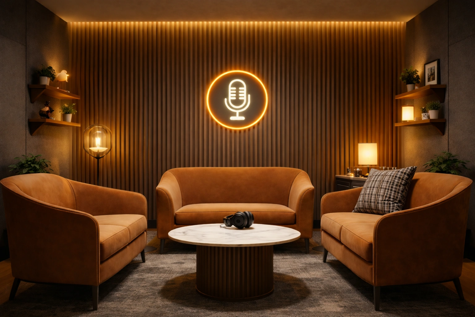 The rise of digital media, online content creation, and independent broadcasting has significantly increased the demand for professional podcast studios. This project focuses on the design and development of a modern podcast studio, carefully planned to provide high-quality audio recording conditions while maintaining an aesthetically appealing environment for video podcasts and digital content production. Podcast studios today are not just sound recording rooms; they also function as visual content production spaces. Many podcasts are recorded in video format and published on platforms such as YouTube, Spotify, and social media channels. Therefore, the design must combine acoustic performance, lighting quality, and visual appeal. This studio design project aims to create a professional recording environment that supports clear sound capture, comfortable conversation settings, and a visually engaging background suitable for filming. Project Concept The main concept behind the design is to create a modern creative workspace that blends acoustics, lighting, and interior aesthetics. The studio is designed to minimize sound reflections and external noise while creating an immersive atmosphere that enhances the overall podcasting experience. Unlike traditional recording studios that often feel dark and technical, this podcast studio is designed with a balance between professional audio performance and modern interior design. The studio environment encourages relaxed conversation, natural interaction between hosts and guests, and a visually attractive setting that enhances the viewer’s experience. Space Planning The layout of the podcast studio focuses on organizing the space into different functional zones that support recording and production activities. Recording Area The core of the studio is the podcast recording zone, where hosts and guests sit around a central table equipped with microphones and audio recording equipment. The furniture arrangement ensures that all participants face each other naturally, allowing comfortable discussions and eye contact. Professional microphones mounted on adjustable boom arms provide flexibility and ensure optimal sound capture. Comfortable seating encourages long recording sessions without fatigue. The table design includes hidden cable management so that wires remain organized and do not interfere with the visual appearance of the studio. Acoustic Treatment Acoustic design is the most critical component of a podcast studio. Without proper sound treatment, recordings can suffer from echo, reverberation, and unwanted noise reflections. To achieve optimal sound quality, the walls of the studio are covered with acoustic foam panels and sound-absorbing materials. These panels reduce echo and improve speech clarity during recording. In addition to foam panels, decorative acoustic elements such as wooden slats or fabric panels can be integrated into the design to maintain both functionality and visual appeal. This approach ensures that the studio maintains professional broadcast-level audio quality. Lighting Design Lighting plays an essential role in podcast studios, particularly when recordings are filmed for video platforms. The lighting strategy for this studio includes a combination of: • Soft key lighting to illuminate the hosts • Ambient lighting to create atmosphere • LED accent lighting to enhance visual depth RGB LED strips are often used to create colored background lighting that adds personality to the studio environment. These lights can be adjusted depending on the theme of the podcast or branding requirements. The goal is to create a cinematic yet comfortable lighting environment that works well for both audio and video production. Background and Visual Branding Podcast studios frequently serve as the visual identity of the show. Therefore, the background behind the hosts is carefully designed to enhance branding and aesthetics. The background may include: • Decorative shelves • Books and small props • Indoor plants • Neon signage or logo panels • Textured wall finishes These elements create a layered and interesting backdrop that looks appealing on camera while maintaining a professional studio feel. A well-designed background improves the visual storytelling of the podcast and strengthens brand recognition. Equipment Integration A modern podcast studio includes various technical components that must be integrated seamlessly into the interior design. Typical equipment used in the studio includes: • Professional microphones • Audio mixers and interfaces • Studio headphones • Cameras for video podcasts • Lighting equipment The design ensures that all equipment is positioned efficiently without creating visual clutter. Cable management solutions and concealed wiring help maintain a clean and organized environment. Comfort and User Experience Comfort is an essential factor for podcast recording sessions, which can often last for several hours. Ergonomic chairs, proper desk height, and adequate lighting ensure that hosts and guests remain comfortable throughout the recording process. Temperature control and ventilation also contribute to a pleasant studio atmosphere. The studio is designed to feel like a creative conversation space rather than a rigid technical environment. Interior Style The overall interior style of the podcast studio follows a modern creative aesthetic that combines dark tones with accent lighting. Common materials used in the design include: • Acoustic foam panels • Wooden slat panels • Matte black finishes • Fabric sound panels • LED lighting strips The contrast between dark walls and illuminated accents creates a dramatic yet sophisticated environment that works exceptionally well on camera.