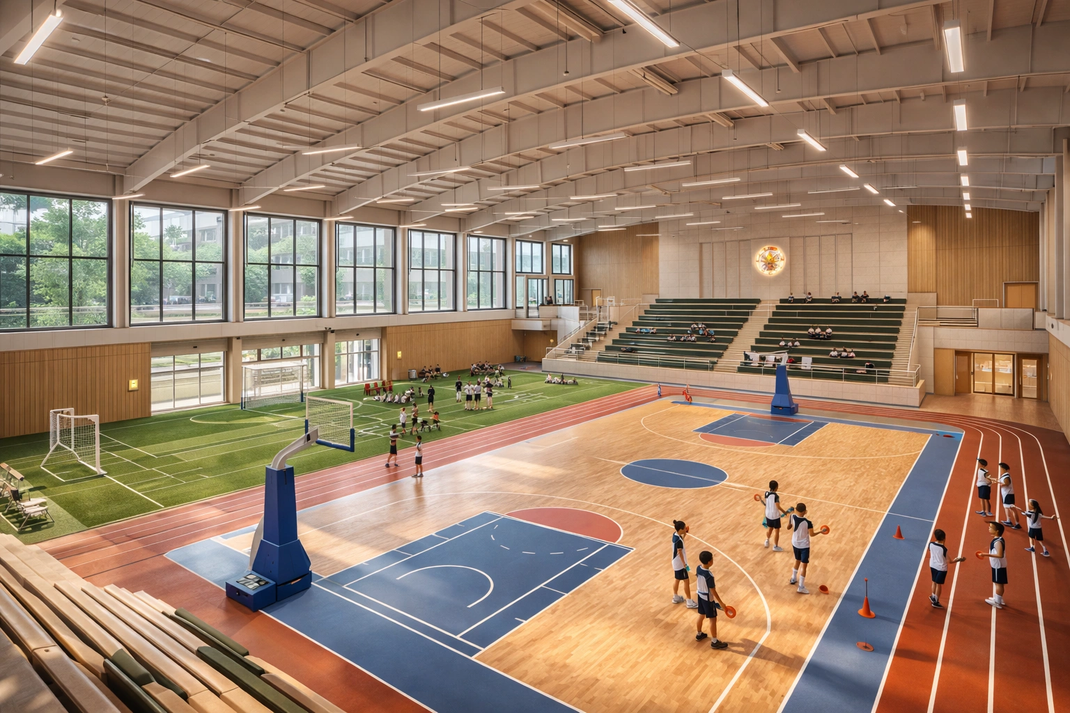 Educational institutions today are increasingly recognizing the importance of sports and physical activity as an essential component of student development. A well-designed sports complex not only promotes physical fitness but also supports teamwork, discipline, and leadership among students. This project focuses on the design of a modern school sports complex located in Gakhar, developed under the guidance of department officials of the school to provide students with high-quality sports facilities. The goal of the project was to create a multi-functional sports environment that supports various athletic activities while also serving as a gathering space for school events, competitions, and training sessions. The sports complex was designed with a balance between functionality, safety, and modern architectural aesthetics. This facility aims to enhance the school’s infrastructure and encourage students to actively participate in sports and outdoor activities. Design Concept The design concept of the sports complex revolves around the idea of “Active Learning through Sports.” The complex was planned as a dynamic environment where students can train, compete, and develop athletic skills in a safe and motivating atmosphere. The architecture emphasizes open spaces, natural ventilation, and easy accessibility to ensure a comfortable sports environment. The design incorporates modern sports infrastructure while maintaining a simple and practical architectural language suitable for a school environment. Master Planning and Layout The sports complex was designed with careful attention to space organization and circulation. The layout ensures that multiple sports activities can take place simultaneously without interfering with one another. The complex includes several dedicated zones for different types of sports and physical training activities. Football Ground At the heart of the sports complex is a full-sized football ground, which serves as the primary sports facility for the school. The field is designed with proper turf and drainage systems to ensure durability and performance. The football ground provides students with the opportunity to participate in regular practice sessions, inter-school competitions, and sports tournaments. Surrounding the field is an open viewing area that allows spectators to watch matches comfortably. Running Track Encircling the football field is a running track designed for athletics training. The track allows students to practice running, sprinting, and other track and field activities. The track is designed with durable materials that ensure safety and performance while minimizing the risk of injuries during training sessions. This running facility encourages students to develop stamina and physical endurance. Multipurpose Courts In addition to the football ground and running track, the complex includes multipurpose courts designed for sports such as basketball, volleyball, and badminton. These courts provide flexibility, allowing the school to host various sports events and training sessions. The courts are designed with proper markings and high-quality surfaces to ensure safe and comfortable gameplay. The multipurpose nature of these courts makes the sports complex adaptable to different sports programs. Spectator Seating and Pavilion A spectator seating pavilion was incorporated into the design to accommodate students, teachers, and visitors during sports events. The seating area includes shaded structures that protect spectators from direct sunlight while providing clear views of the playing fields. This pavilion also acts as a gathering space during school sports days and competitions. The pavilion architecture uses simple yet modern design elements that complement the overall character of the sports complex. Training and Warm-Up Areas Dedicated warm-up and training areas were included in the design to support student athletes before practice sessions and competitions. These areas allow students to stretch, train, and prepare physically before participating in sports activities. The open layout of the training zone encourages group exercises and coaching sessions. This section of the complex helps students develop strength, coordination, and overall physical fitness. Landscaping and Open Spaces The sports complex also incorporates landscaped green areas to enhance the overall environment of the facility. Trees, grass areas, and shaded spaces provide natural comfort and contribute to a refreshing outdoor atmosphere. These landscaped zones also act as relaxation areas for students and spectators. The integration of greenery helps improve the visual appeal of the sports complex while supporting environmental sustainability. Architectural Design Approach The architectural design of the sports complex focuses on simplicity, durability, and functionality. Because the facility will be used daily by students, the materials and structures were chosen to ensure long-term performance. The design includes: • Durable sports flooring materials • Weather-resistant pavilion structures • Open-air circulation spaces • Safe pathways and accessibility routes The architecture reflects a modern educational sports facility that is both practical and visually appealing. Safety and Accessibility Safety was a major priority in the planning of the sports complex. The layout ensures clear circulation paths so that students can move safely between different sports areas. Proper lighting was also included to allow safe use of the facility during evening activities or events. Accessibility considerations ensure that students of all abilities can use the sports complex comfortably. Educational Impact The development of the sports complex plays a significant role in improving the overall educational environment of the school. Sports facilities contribute to: • Physical fitness and health • Teamwork and cooperation • Student confidence and leadership • Balanced acade